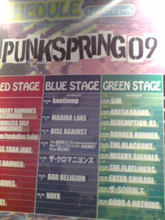 いい加減くどい!笑 もうすぐ発売のロッキングオンジャパン(以下ROJ)の表紙・巻頭はエレファントカシマシ。 これももうすでに何回も言った。 んで、実に10年ぶりの表紙をエレカシが飾るのだけど 山崎さんがエレカシを初めて表紙にした時のがコレ。 焚き火の上を走る宮本。 ピンボケ。モノクロ。 1991年の初版・・・まったく売れなかったらしい。 しかし、その分、今では中古屋でかなり高い値段で出回っている代物。 そりゃそうだ。持ってる人がほとんどいないのだからw というか、最先端を行く音楽雑誌の表紙として、確かにこりゃーないだろw 話は変わって ・・・というかこのブログを初めて読む人のために説明しよう 山崎さん山崎さんというのは何も食品会社のことを言ってるのではなくて ロッキングオンジャパンの編集長のこと。 というか音楽評論家。そう、正しくは。 昨日の記事が妙に気取った評論家っぽい文章だったのも、私が山崎さんに影響を受けているからである。 なまいきですみません。 そしてその山崎さん。 RO69のブログを読むと やはり昨日のPunk Springに顔を出していたらしい。 ロッキングオン社社長の渋谷さんも。 似てるかも!って人はいたのだけれど、確信なく、話しかけられなかった。 っていうか、話しかけてどうする? 「宮本さんや甲本さんと仲良しなんですよね」 「宮本さんとすれ違ったことあるんです!」 「宮本さんの知り合いが私の知り合いで」 って・・・・全部「だから何?」って感じだ。 あ。 「いつもブログ読んでます!」 うん、これはイケる。 しかし 「雑誌は?」と聞かれたら 「最近は立ち読みしてます」 がびーん。 そんな妄想はさておき 昨日は細美武士率いるソロプロジェクトのメンバーにインタビューすべく彼も幕張に訪れていたそうだ。 私は正直、細美さんの歌は好みではない。 でもライブはとても盛り上がっていて、良かった。 これは最近思うことなのだが 知っておく必要のある音楽というのは、実はそう多くない気がする。 人にはそれぞれ好みがあるし、時期もある。 だけど、必要がないからと云って、聴かなくてもいい音楽というのは、無いように思う。 あくまで私の立場で思うことだけど。 だから、昨日の「フェスを見る」という経験は、とっても意味があるものだった。 ライブを見た、ということがある種何かしらの自信に繋がっている。 だから余計、山崎さんが彼らのライブを見て、どう感じたのか知りたいし、インタビューではどのように突っ込んだ話をしたのか気になる。 4月20日私の誕生日に発売されるROJが楽しみだ。 みんなも立ち読み・・・ あ、いや 読みましょう。笑 パンスプの報告日記のタイトルがバラバラで申し訳ない。 最初は1、2、3とちゃんと順々に書くつもりが、2回目ですっかり忘れてしまった。 3回目に至っては数字以外のタイトルを忘れた。 ま、そんなことはどうでもよいのだ。 幸運にも無料チケットを譲り受けた私は、幕張メッセでのパンクスプリングを、おおいに楽しめた。 初のオレスカバンドは同い年ながら圧巻。 パワフルなステージで熱狂の渦に2万人を巻き込んだ 最前列でその全てをまのあたりにした私は、感動とともにとても悔しかった。正直な感想。 うしろからダイブの雨。 首をけられた。 押し寄せる人々の全体重を背負い、柵に食い込む胸。 臓器が全てつぶれてしまうかと思った。 そして9mmや元エルレガーデンの細美武士のステージを見た後、多分11ヶ月ぶりのクロマニヨンズ。 フェスへ行ったのも初めてだけど、フェスの中のクロマニヨンズを見たのも初めてだった。 物凄い人、人、人。 ダイブとか怖いので 真ん中くらいにある柵にしがみつく。 なんと目の前に2mはある背丈の外国人に立たれてしまった。 それでも距離的には彼等を肉眼で確認できるくらい近かった。 マーシーのギターが真っ赤な、長方形のボディで、びっくりした。 弾丸ロックやタリホーなどの初期曲に続いてギリギリガガンガンや紙飛行機など飛ばしまくり。 最後は全身チブからエイトビートという流れ。 「すぐ近くから、チンケなミサイルが飛んできたけど、どんなミサイルよりも強いのがロックンロールです」とヒロト。 さすがのMC。 これだけ短い言葉で、今の社会と、彼の世界観と、彼のロックンロールの定義を表せるのか。 そして最後、ここにいる2万人に「みんなぶち壊せ!!」と投げ掛けた。 エイトビートのイントロで涙があふれた。 わざとリズムを外した吹き方。でら上手いくせに、わざと下手に吹く。 パンクに騙され続けた男のハーモニカに、私は今日も騙された。 CDがわりとネットで不評だったから、心配していた。 ダマサレタ。 大丈夫だわ、このおいちゃんたちは(笑) これからも、「そのまま」変わり続けてほしいと、心から願った夜。 実は今回のチケットは無料だが、ニトロのつてでいただいたもの。 ニトロからの誕生日プレゼントらしい(笑) 豪華すぎるわ。 けど最高。 もうすぐ21才。